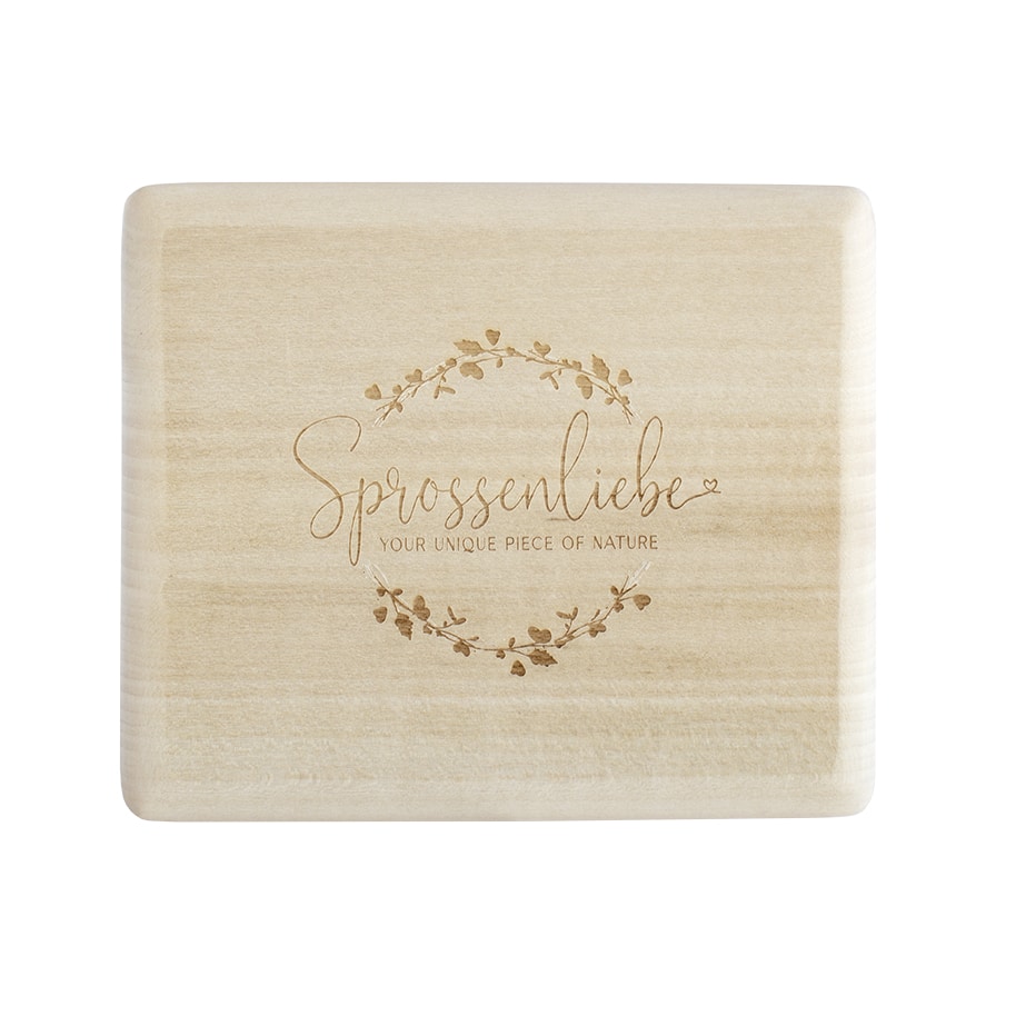 Die Abdeckung aus natürlichem Birkenholz ist nicht nur ein echter Hingucker, sondern schützt die Samen in den ersten Tagen der Keimung vor dem Austrocknen.Neben dem ästhetischen Aspekt hat die Holzabdeckung nämlich auch einen praktischen Nutzen. Die Abdeckung fördert ein gleichmäßiges Wachstum der Keimlinge und hält die Feuchtigkeit in der Anzuchtschale. Das sorgt dafür, dass deine Pflanzen optimal gedeihen. Die Holzabdeckung ist mit einer zarten Gravur unseres Sprossenliebe Logos verziert und wird so zu einem echten Unikat. Bitte beachte, dass Holz ein natürlicher Rohstoff ist und jede Abdeckung eine individuelle Maserung und Farbe hat. Um die optimale Haltbarkeit zu gewährleisten, empfehlen wir dir, den direkten Kontakt mit Wasser zu meiden und die Abdeckung nach der Keimung mit der Unterseite nach oben trocknen zu lassen.