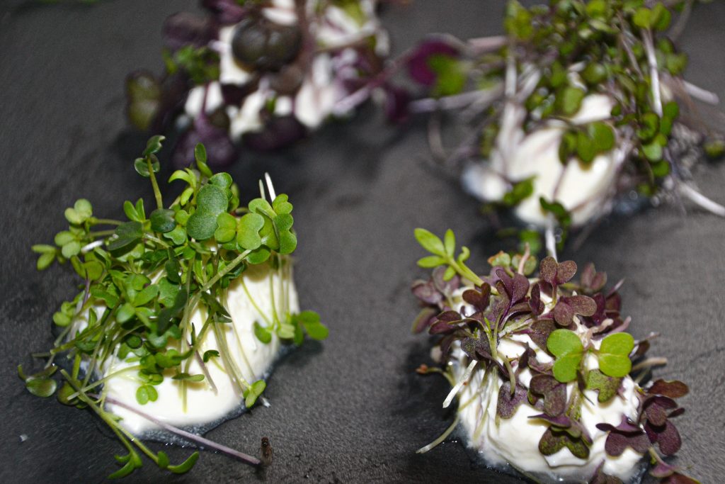 Deine Microgreens frisch ernten und fein hacken. Hier eignen sich besonders gut würzige Sorten wie unser „Vital Mix“ und der „Green Booster“ aber auch Einzelsorten wie Rettich, Senf, Radieschen, Pak Choi, Rucola…